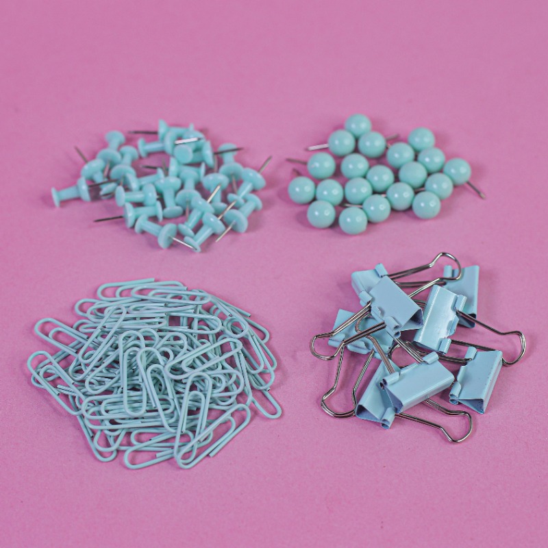 Versatile set includes paper clips, i-shaped nails, and dovetail clips for various needs.